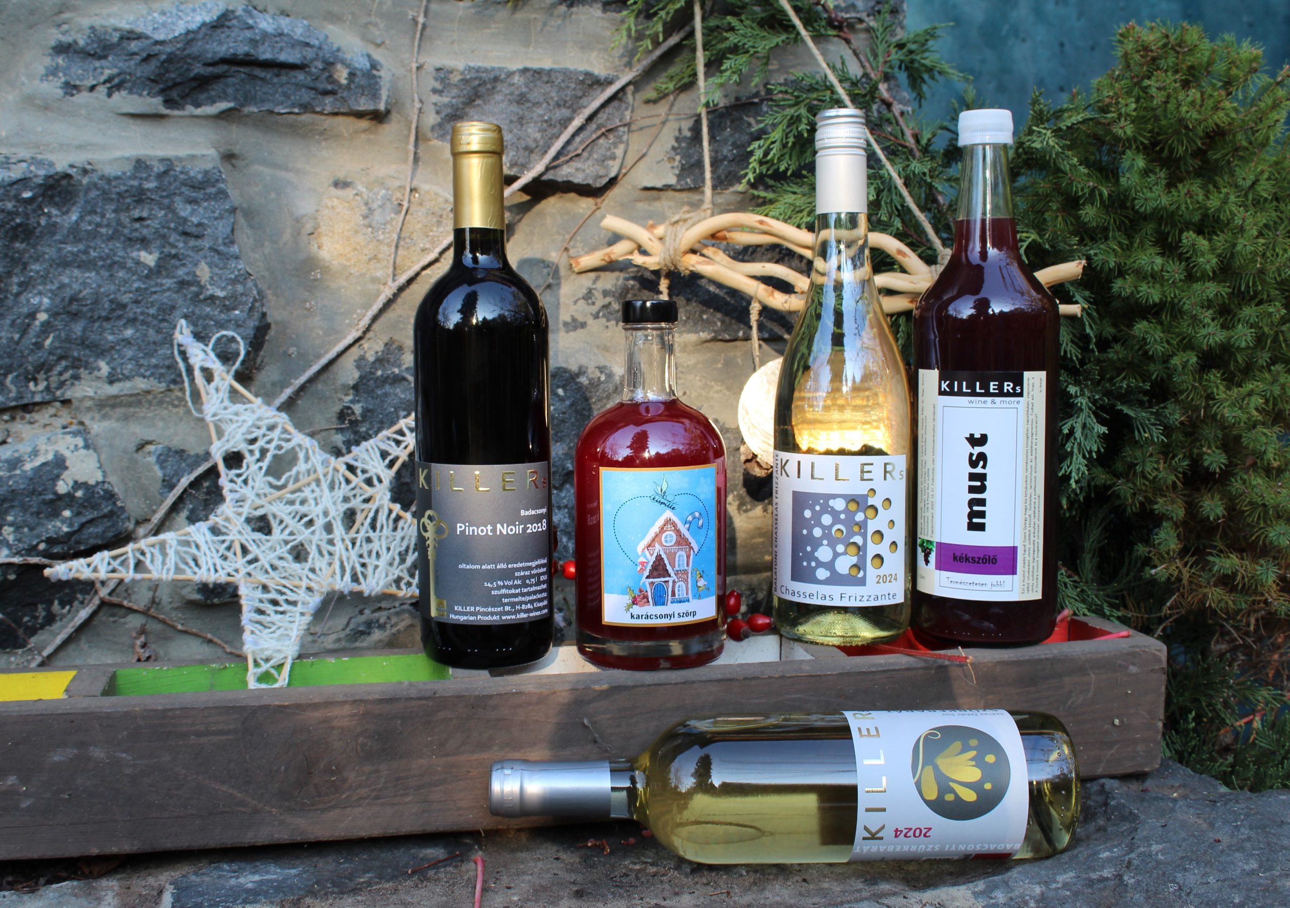 Ünnepi válogatás természetes ízekkel és kézműves hangulattal. A friss, gyümölcsös Chasselas Frizzante 2024 a könnyedséget hozza, míg a Pinot Noir 2018 mélyvörös, „ropogó tüzével” gondoskodik a meghitt pillanatokról. A Szürkebarát 2024 elegáns egyensúlyt teremt a pohárban, mellé pedig a bio, fűszeres karácsonyi szőlőszörp kínál alkoholmentes alternatívát – melegen elkészítve forraltbor-hangulatot idéz, így mindenki csatlakozhat az ünnepi koccintáshoz.